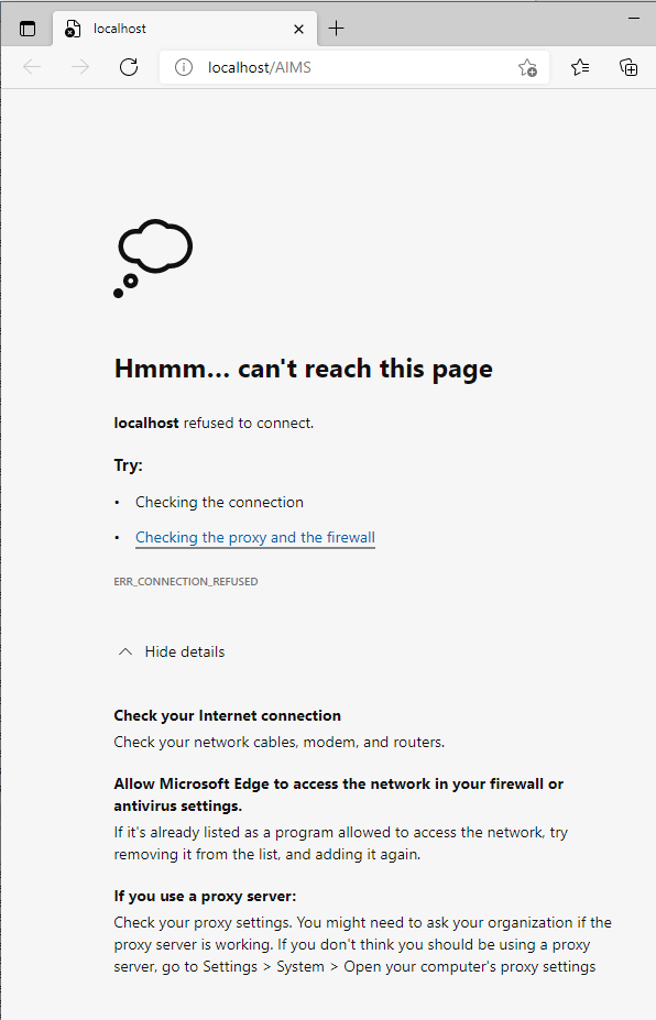 localhost refused to connect.