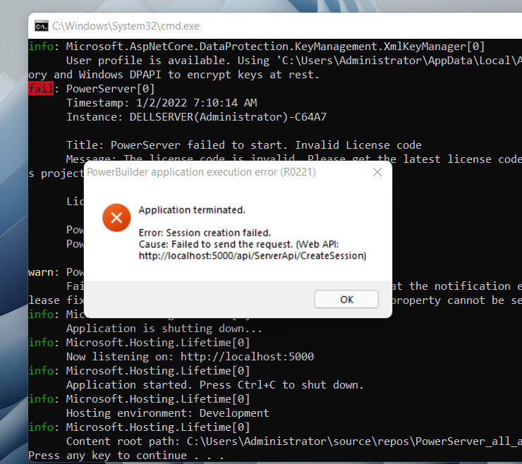 powerserver error