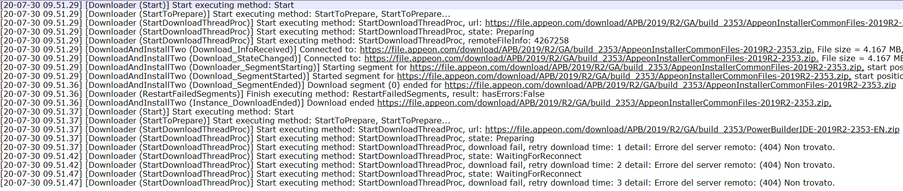 Hi everyone, i'm trying to install latest build of PB2019 R2, but i get an error trying to download the PowerBuilder IDE update package.