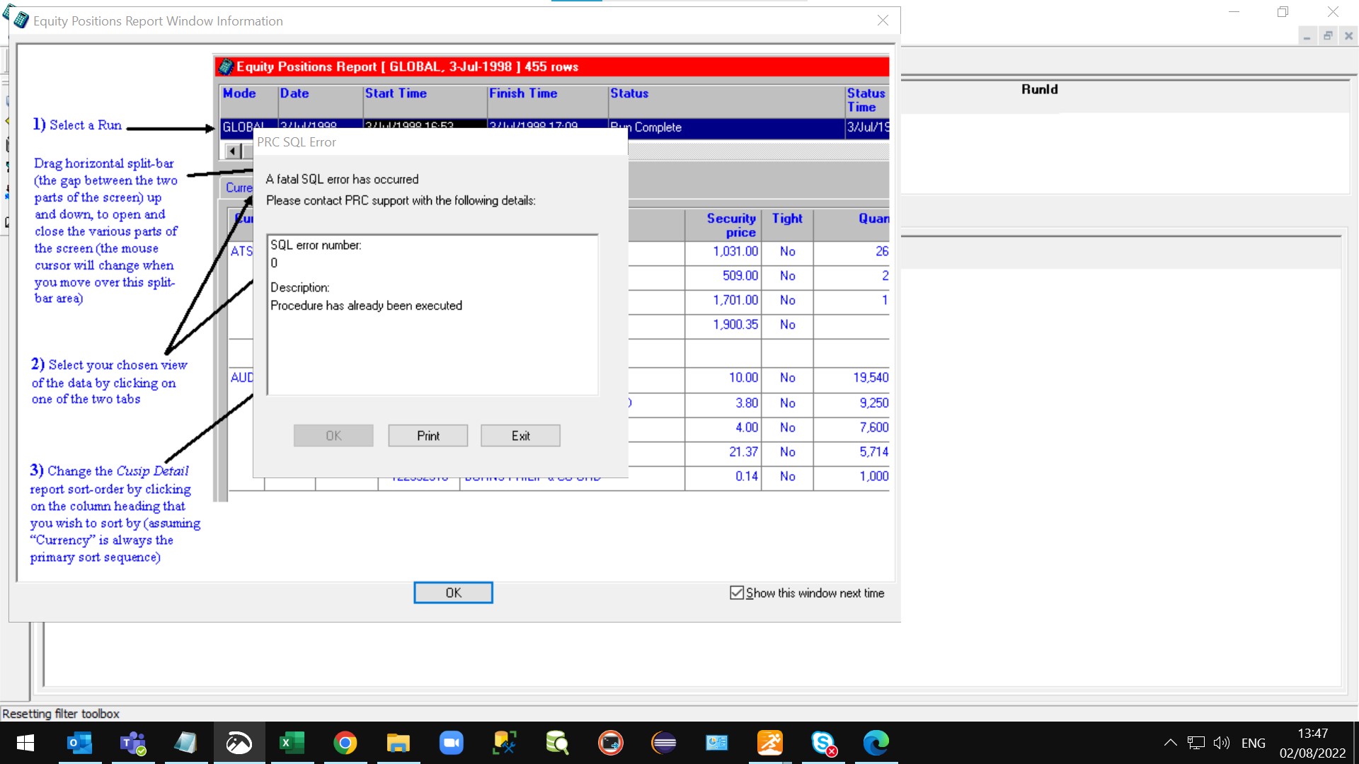 "Error Severity (21)Bad runtime function reference at line11 in ue_m_refresh of object w_auditcusip"