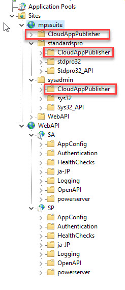 When I launch the application, the CloudAppPublisher link points to the a folder in the mpssuite root folder and not within the application. So, I had to manually copy the CloudAppPublisher folder under c:\inetpub\wwwroot folder. Not sure why the link is not pointing to the CloudAppPublisher folder within each of the application folder.