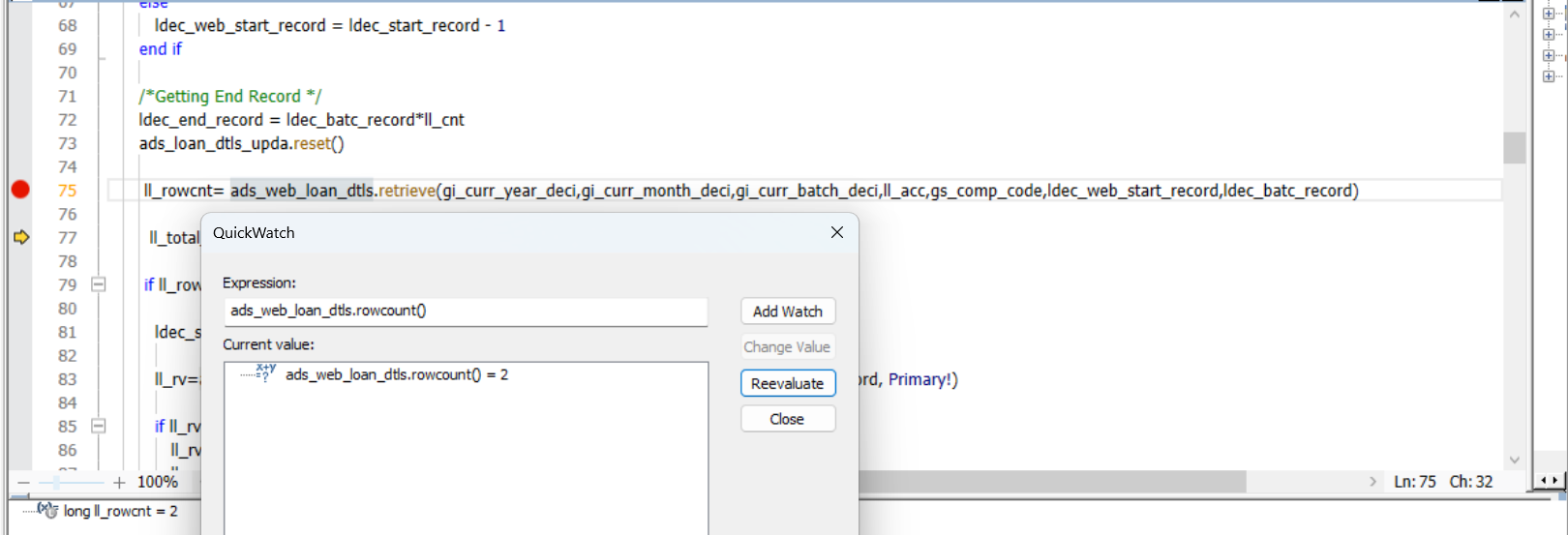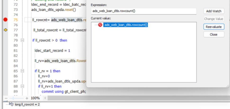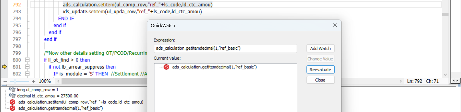 In the latest PowerBuilder 2025 solution format, We are facing issues with debugging where We cannot evaluate expressions such as rowcount. This problem extends to other expressions as well where the evaluation during debugging is inconsistent or fails.