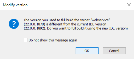 I attached an image of the message that appears for each target in the workspace. I'm wondering what happens if I check the 'Do not show' checkbox. Will it still update the targets for the new build?
