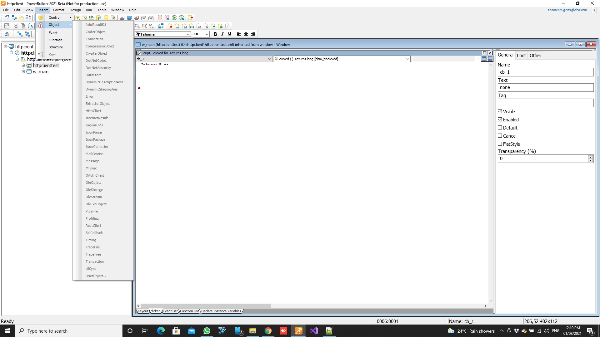 My PowerBuilder Insert - Object menu getting invisible. what is the reason ? (Attached picture)