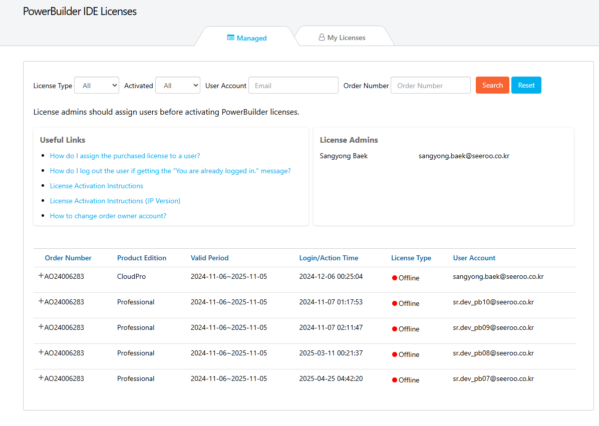 I would like to request official software license certificates for the PowerBuilder licenses currently in use.