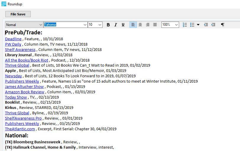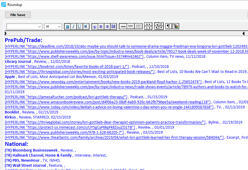 I have a richtextedit control that I'm using to create a RTF report on the fly via sql.