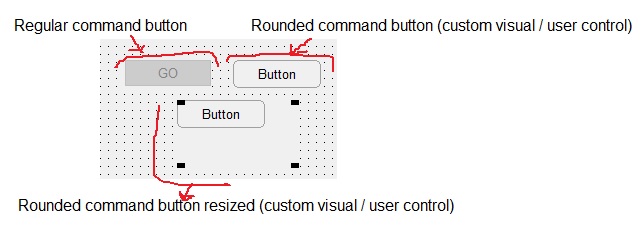 I have made an attempt with a custom visual / user control (rounded rectangle with static text field). However when that user control is added to a window, if it is resized it will not resize/stretch all controls on the custom control in the design painter. I know I can add code to properly stretch it during runtime, but ideally I'd like to see the full size/stretch in design time as well.