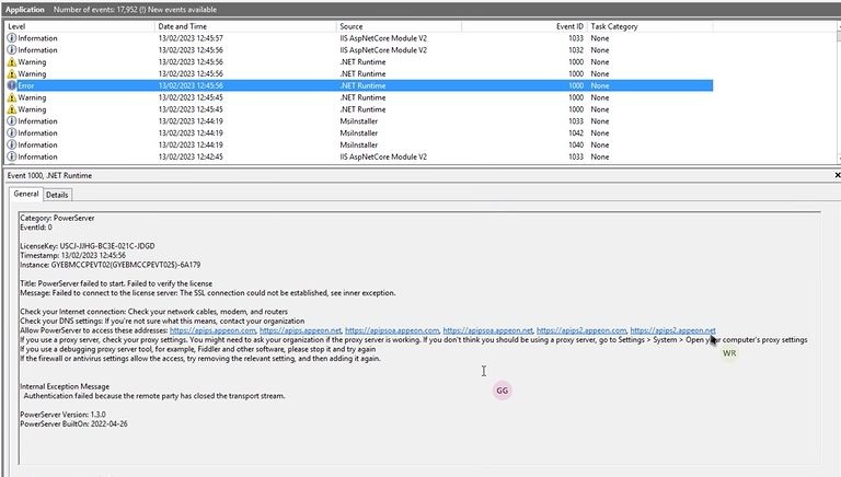 Title:POWERSERVER failed to start. Failed to verify the license.