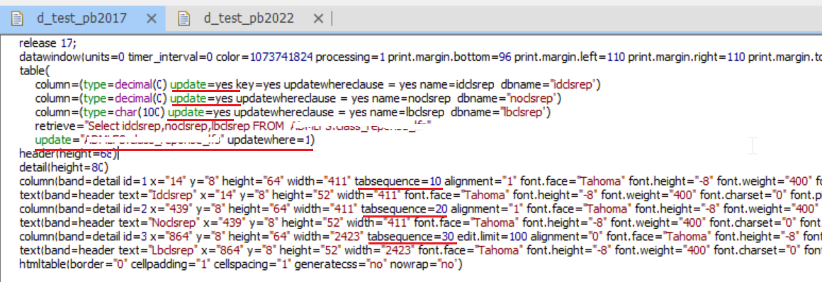 In PB 2022 the dw has no updateable capability and columns have no tabsequence. (see attachment)