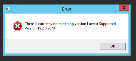 "There is currently no matching version, Lowest Supported Version: 19.2.0.2670"