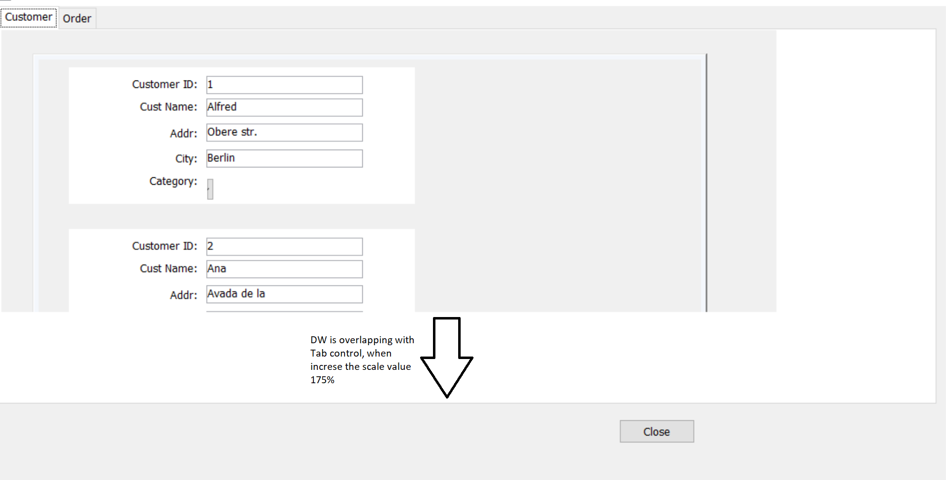 Also, DW control is overlapping with tab control in the same window, when change the scale value (150 to 175%) in display setting.