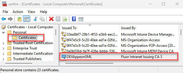 We are using EntraID and replacing the client secret with using a certificate. We are currently able to get a token when using clientsecret. The certificate is installed on my machine.