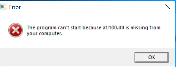 "The program can't start because atl100.dll is missing from your computer."