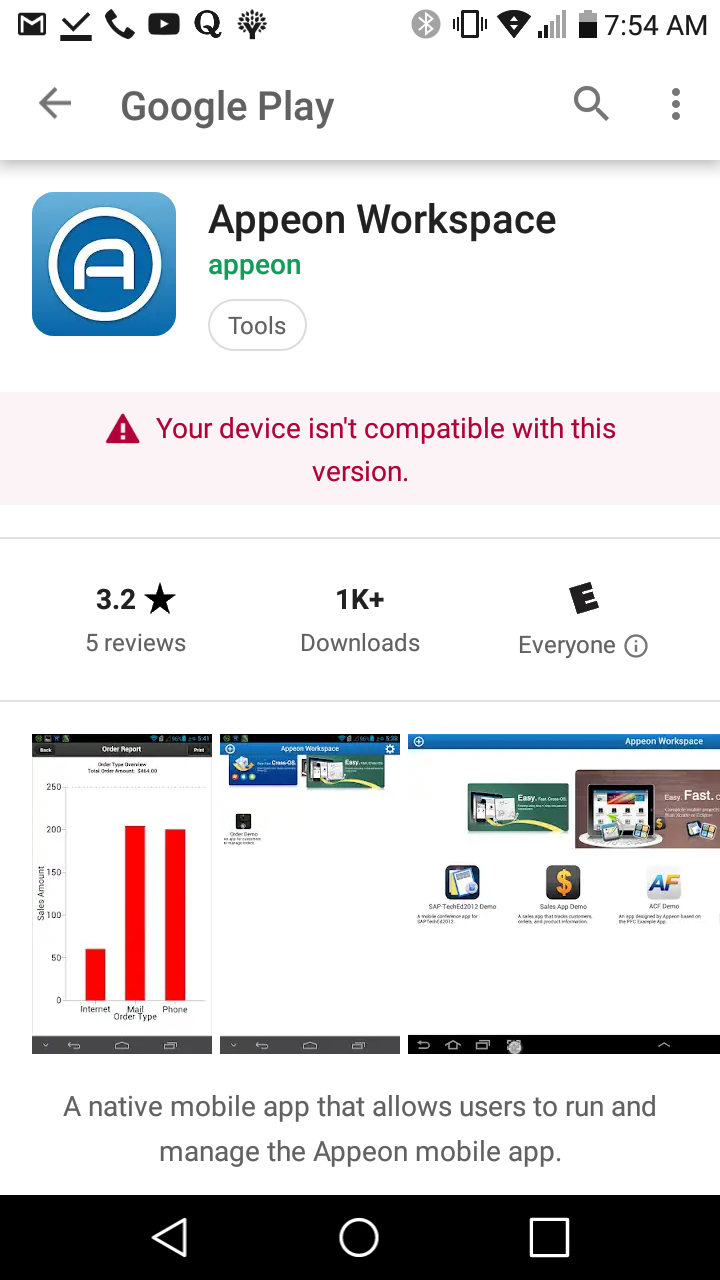 I've downloaded a trial version of PowerBuilder 2017 R3. I've created a mobile app and tested it on my phone and it works great. However, when I get friends to try it, two of them haven't been able to load Appeon Workspace on their android phones. One is a Samsung Galaxy S7, and it gets the message