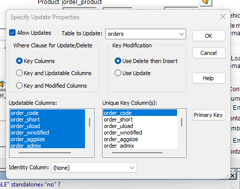This works fine in exe but when deployed to Powerserver the datawindow fails to update the order_code field and i can see the error is its not saving the order_code field.