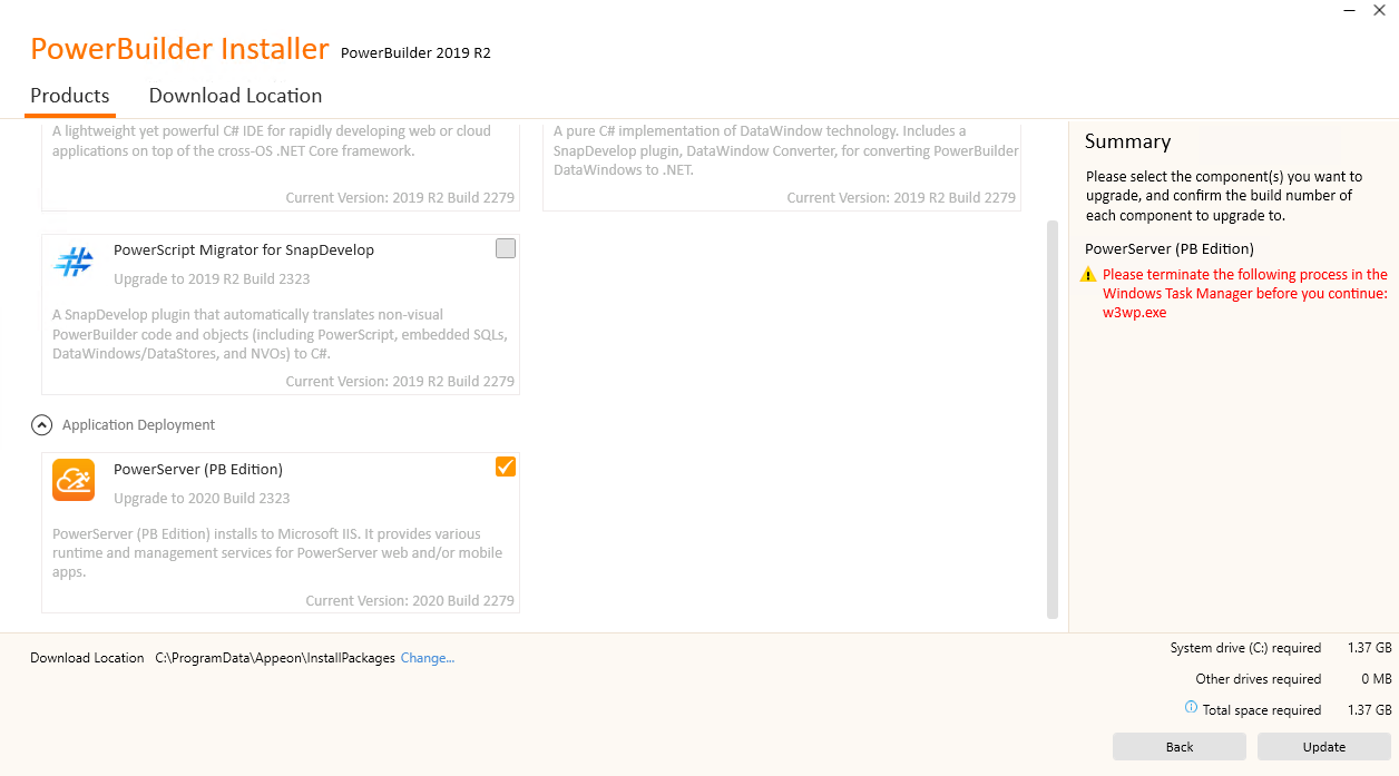 I first want to update to the latest PowerServer, of which it tells me would be 2020 Build 2323 and that I would upgrade from Build 2020 2279.