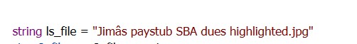 Please note the filename on the second record. Apparently it is UTF-8 encoding. Also in a text editor it shows the name as 'Jimâ??s paystub SBA dues highlighted.jpg' with the ? inside the boxes above.