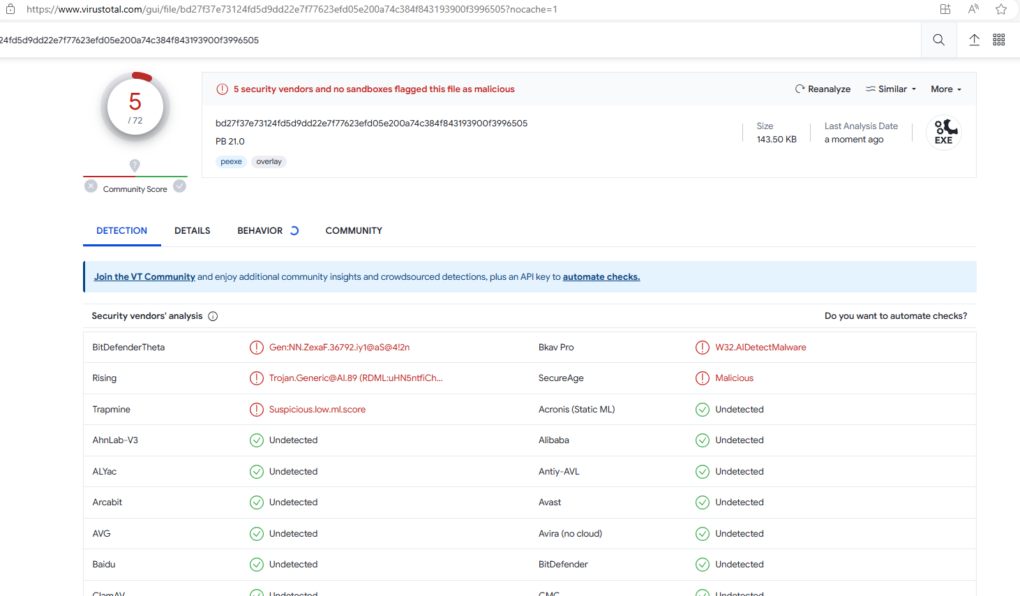 I have a very small application developed in Powerbuilder 2022. When I check the exe file 'with "https://www.virustotal.com/gui/home/upload" it detects 3 viruses: