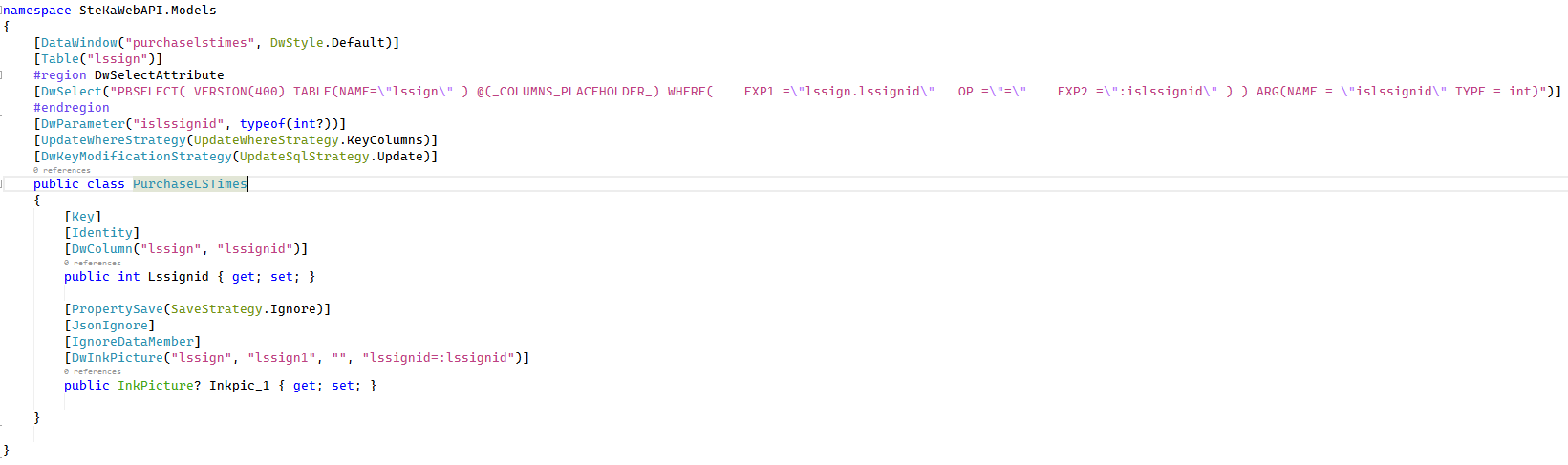 Then, in SnapDevelop 2022 22.2.0.3391 I create a small WebAPI project and convert this DataWindow to a C#Model, this is the result: