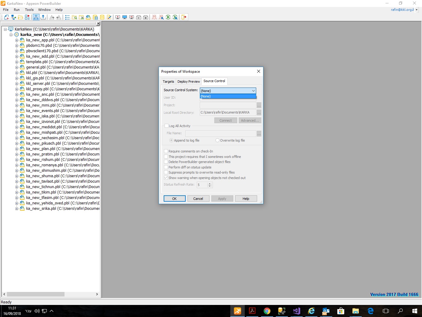 we have a problem. on the properties tab of the workspace we wish to choose PbNative as a source control.